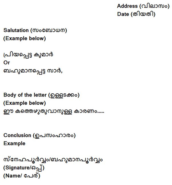 How to write leav letter in malayalam. This is spoken english malayalam tutorial, you can learn english from basic to advance through interesting learning techniques. How to writting leave letter in malayalam. The kind of letter you may write to a friend or family member, lacking punctuation, formal language ("i do hope you are able to make it"), and in general a lot . English to malayalam meaning :: Always this format is used writting leave letter.